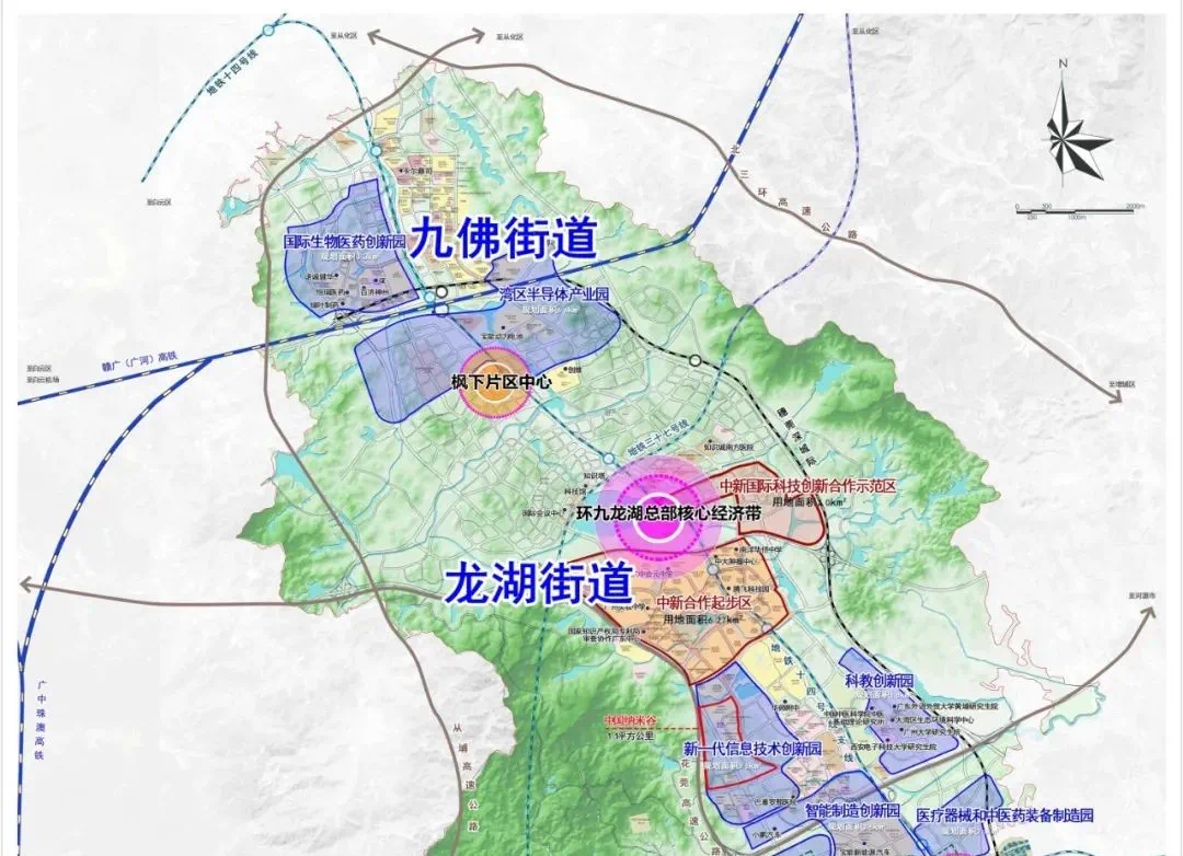 其中,北部以知识城为带动,重点推进知识城北新一代信息技术产业园、集成电路园区、科教创新园、知识城南中医药装备园启动区、国际数字创汇绿谷项目、生物安全产业基地等创新平台和园区建设,保障中新合作二期等项目的落地实施,有助于产业合作、人才培育、完善基础设施。
