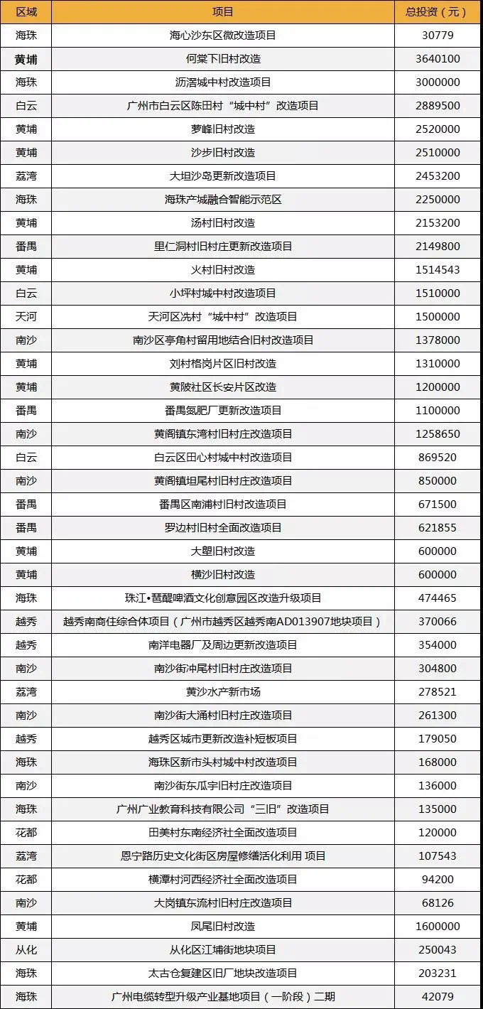 广州2022年重点建设旧改项目