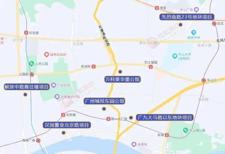 先烈南路23号地块项目则临近地铁5号线淘金站,西侧是执信中学,南边是中大附属肿瘤医院,东面是中大眼科中心。