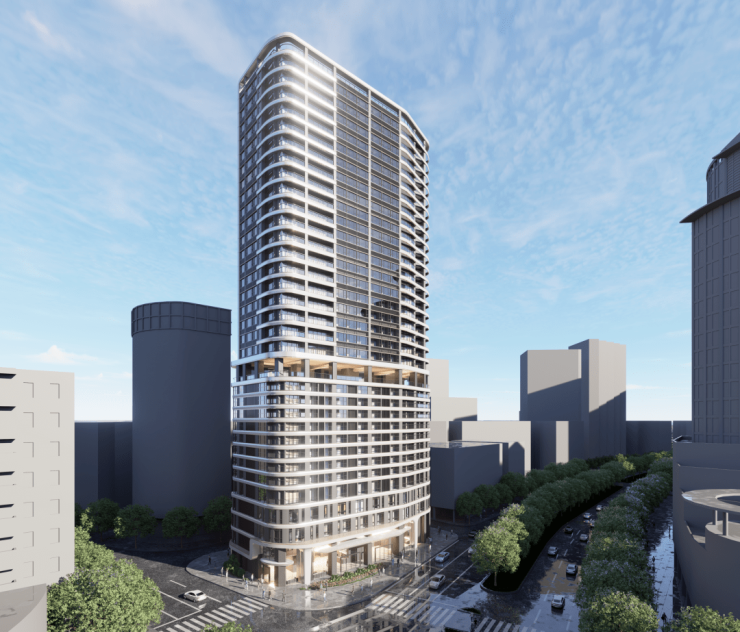 项目为36层单体楼,2梯4户设计,以建面约110-190㎡四房为主,吹风9-12万元/㎡,或于9月对外开卖。