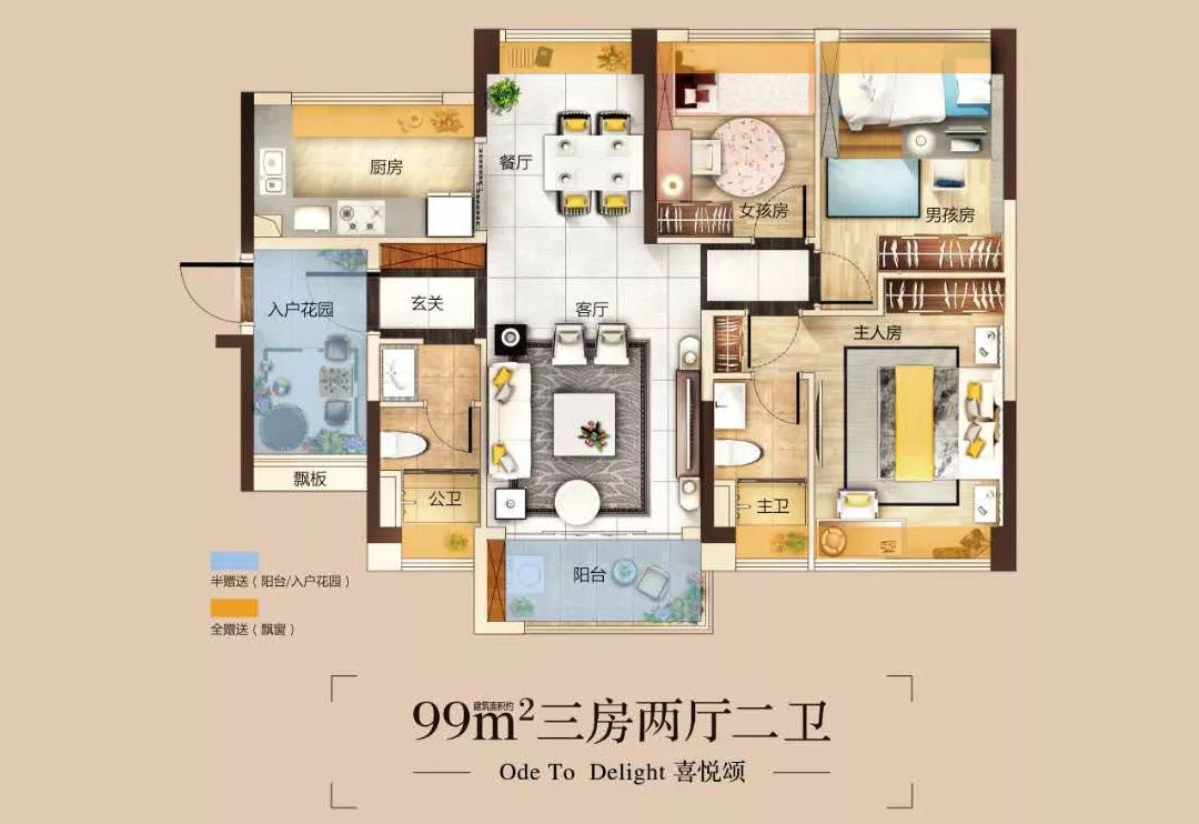 现项目在售96㎡南向三房 、99㎡南北对流三房,均价2.3-2.5万/㎡,较高享97折优惠。其中,96㎡户型首付约65万,99㎡户型首付约70万。