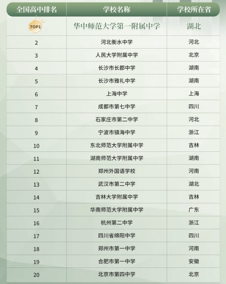 华中师大一附中 全国中学排名第一