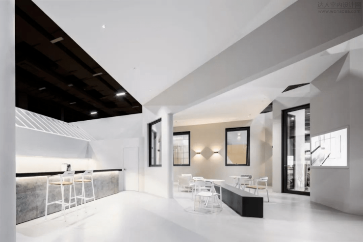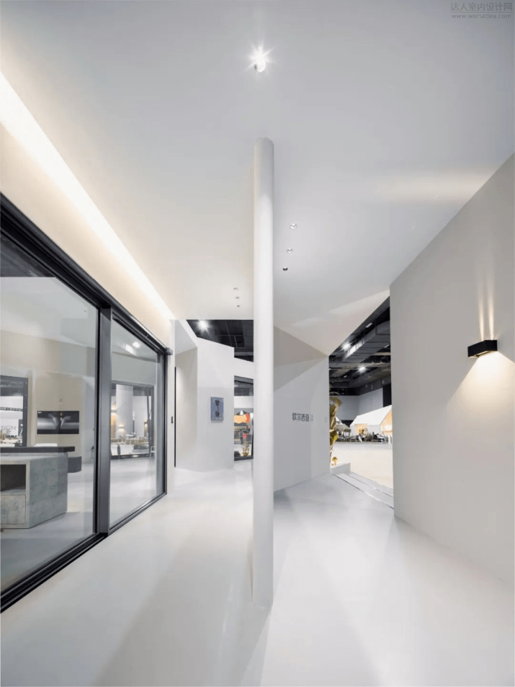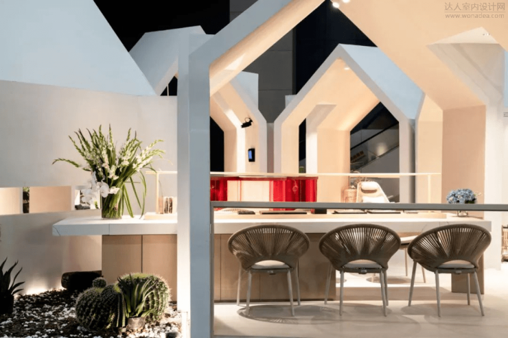展厅设计以自然为主题,花园是重要元素。抽象植物叶片上自然的肌理,在展馆室内制造微型建筑群,门窗就像是建筑空间里的养分,在墙体中穿插流动,通过门窗将光和景引入空间,使整个室内环境变得更加生机勃勃,层次分明。