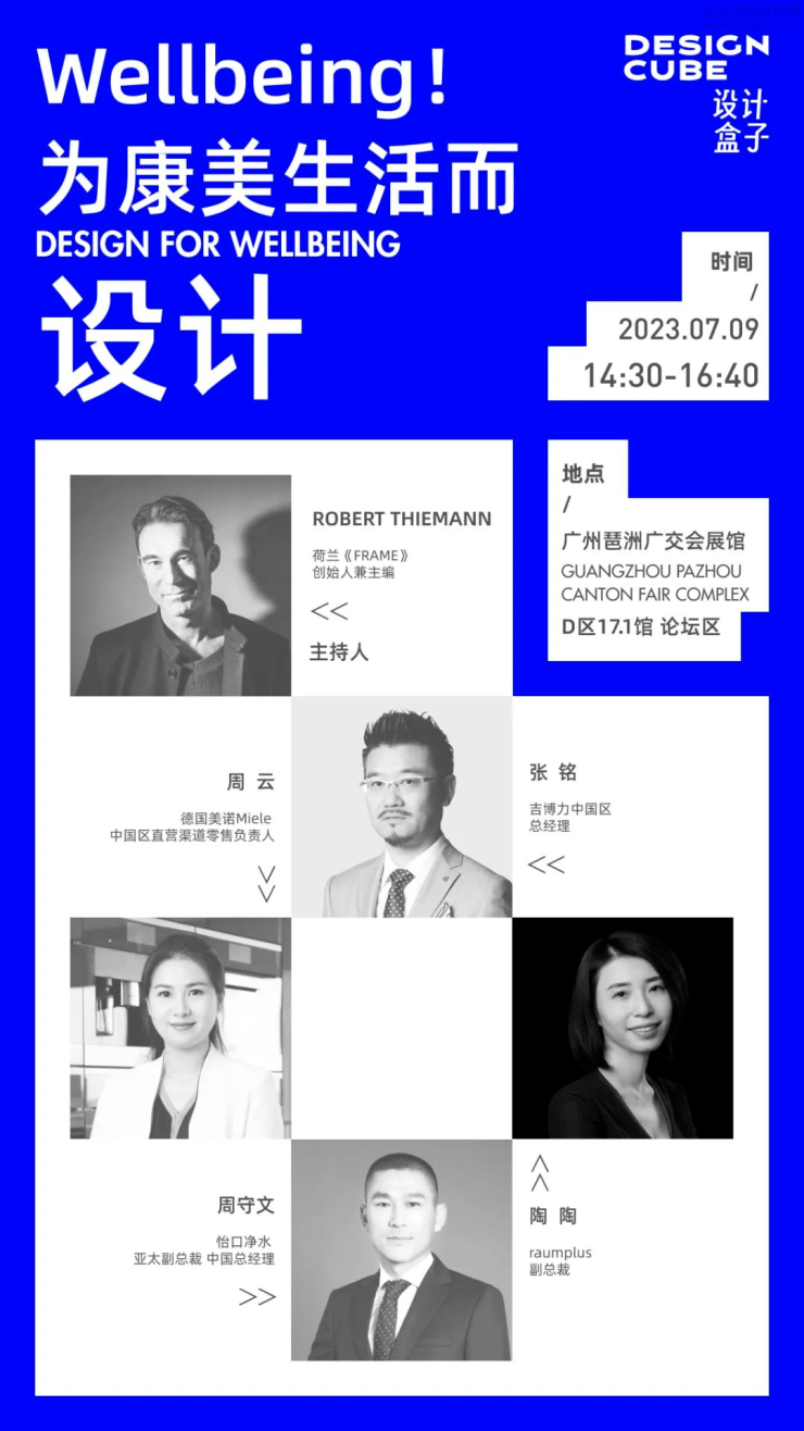 下午,FRAME主编Robert Thiemann 还将与产业端的知名品牌代表:瑞士吉博力Geberit、raumplus、德国美诺Miele、美国怡口净水Ecowater Systems的负责人交流对话,了解中国市场中,产业端面临的痛点难点,以国际视角,分享欧洲成熟市场的产设融合经验,为中国设计与产业升级探索未来发展方向。