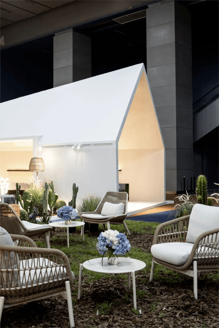 展厅以「亚帝之花 – 绽放」为主题,以绿植结合的多元户外生活场景为介质,实现一步一景的观展体验,在气味装置与空间视觉的感官指引下,让思绪充分延伸到自然、轻松与高品质所构筑的沉浸式户外氛围中。空间延续“重新定义家——家即是度假的地方”的品牌主张,把户外家具从功能与使用价值延伸到精神及文化层面,展现独属于亚帝Artie的品牌美学。