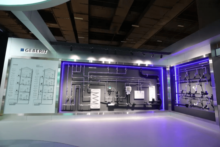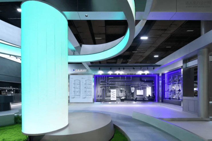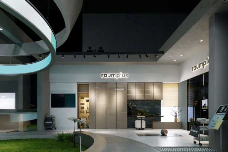 作为瑞士吉博力、美国怡口净水、raumplus、德国美诺四个品牌的联合展厅。设计以「品牌独立,功能融合」为概念,基于四个品牌的独特性,空间规划上为四个不同的品牌建立了独立的展陈窗口。空间中心以圆环形处理,以此来隐喻品牌的串联,同时表达了各品牌均为360度全方位的系统化高品质家居产品代表。