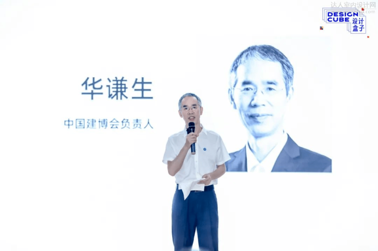在「设计盒子」展厅开幕式上,中国建博会负责人-华谦生,登台致辞,他表示中国建博会(广州)办展的重要理念就是真实反映行业实际,推动行业向前发展,设计与产业间的相互需求与融合是行业当下的一个弱点,设计可以赋能、引领产业,希望通过建博会联合行业协会与设计大咖一起,将中国建博会(广州)设计盒子打造成为产设融合的先锋标杆。