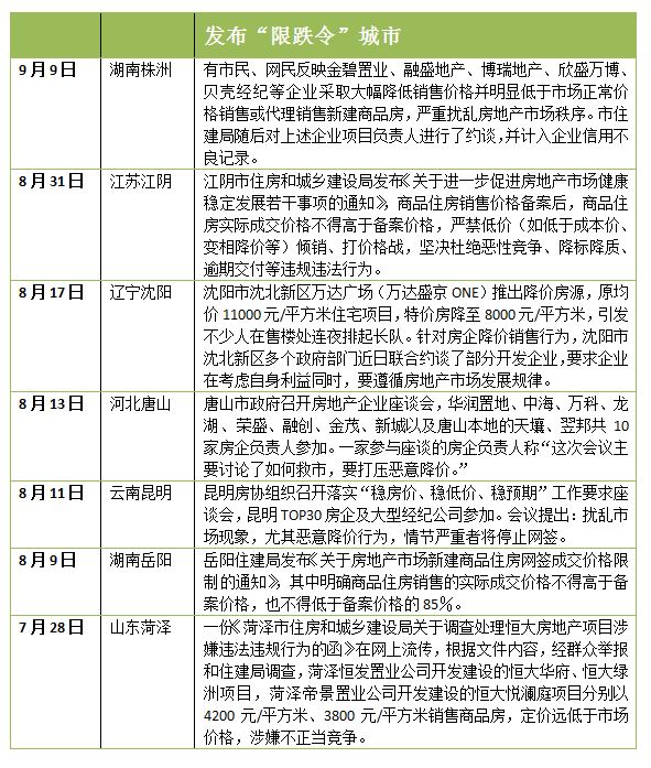 据澎湃新闻不完全统计,截至目前,包括株洲、江阴、菏泽、岳阳、昆明、沈阳、唐山等7城公布房价“限跌令”。