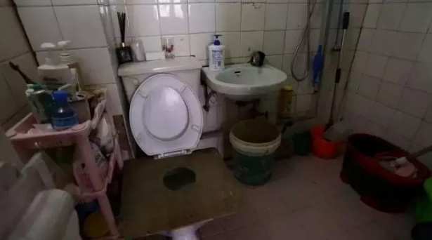 因为房屋建造已久,当时的设计并未考虑卫浴间的错层排水问题,导致污水管道和下水管道裸露在外,这使得卫浴间地面高出其它地方30cm。卫浴间的巨大高差,对生病的田妈妈来说很不安全。而对于卫浴间的调整,也成为此次改造的重点和难点。