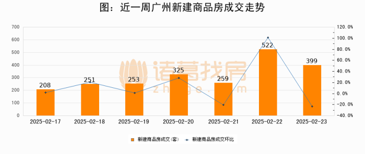 【广州成交日报】02月23日新房成交399套;涨价房源5套