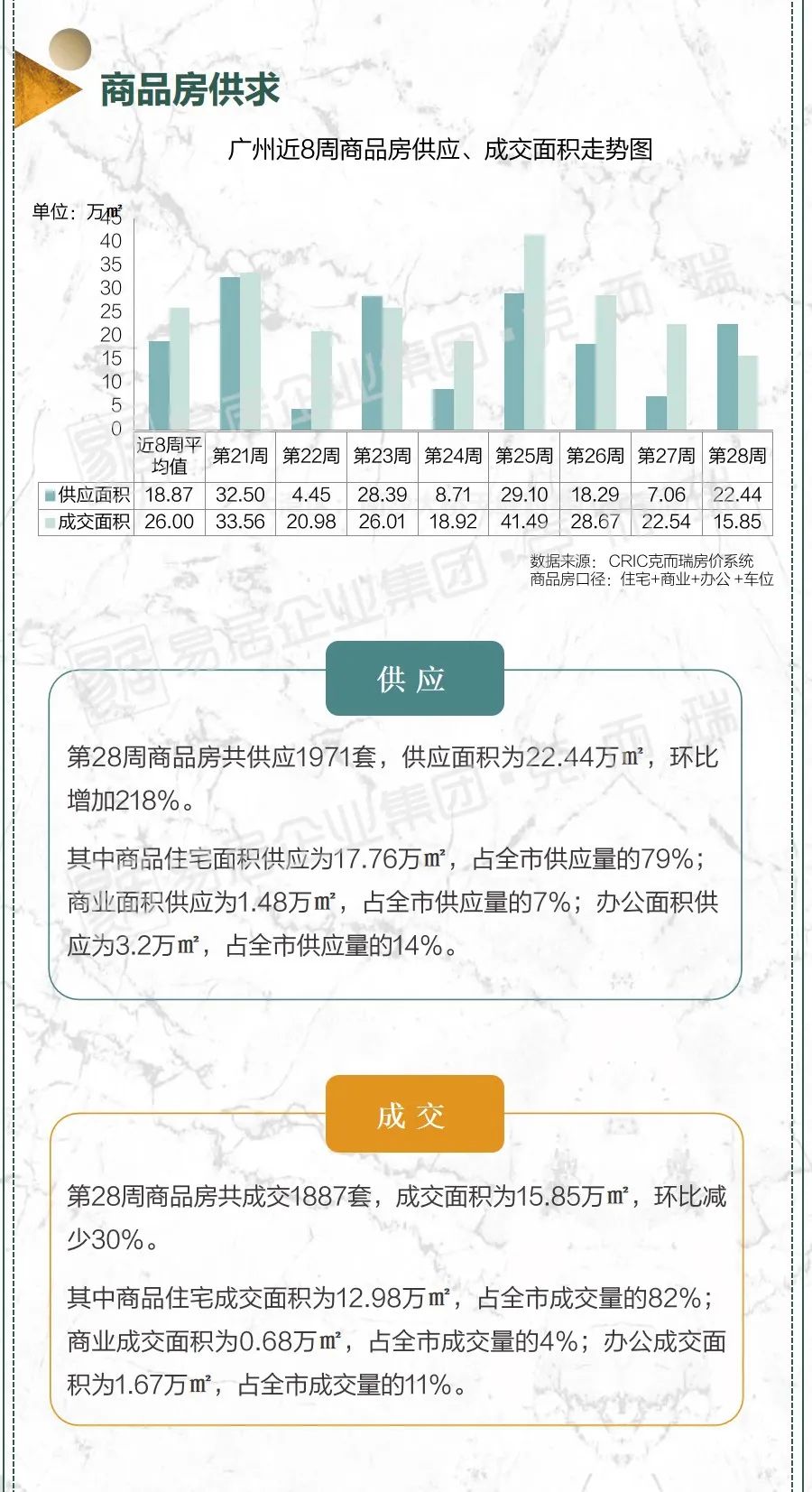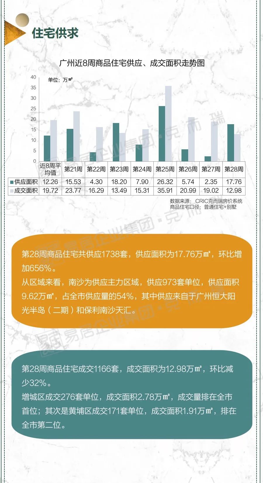 克而瑞数据显示,第28周(7.12-7.18)广州新房共供应1738套,供应面积为17.76万㎡,环比增加656%。