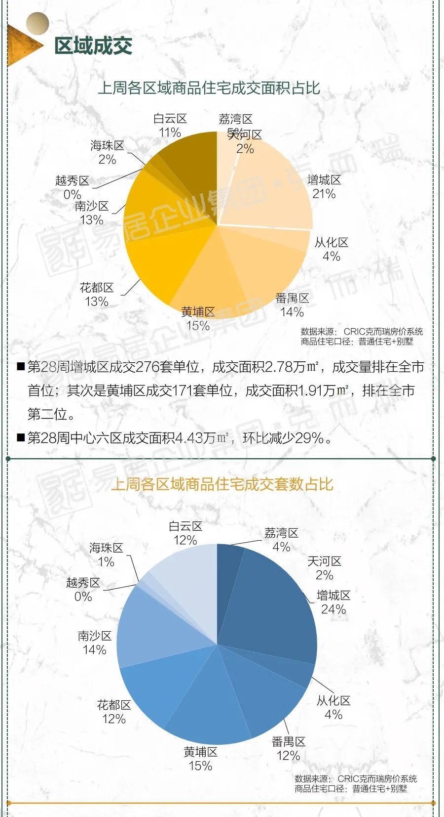 另外,花都区第28周网签成交142套,较第27周157套环比下跌9.6%,为上周广州成交量跌幅较小的区域。
