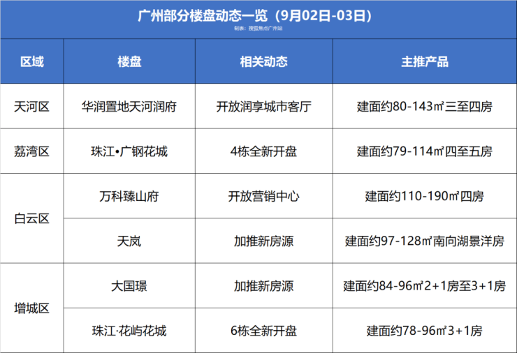 像天河区新盘华润置地天河润府对外开放润享城市客厅;白云区新盘万科臻山府准备开放营销中心迎客;天岚、珠江•广钢花城、大国璟、珠江·花屿花城等盘则拟推出新房源。