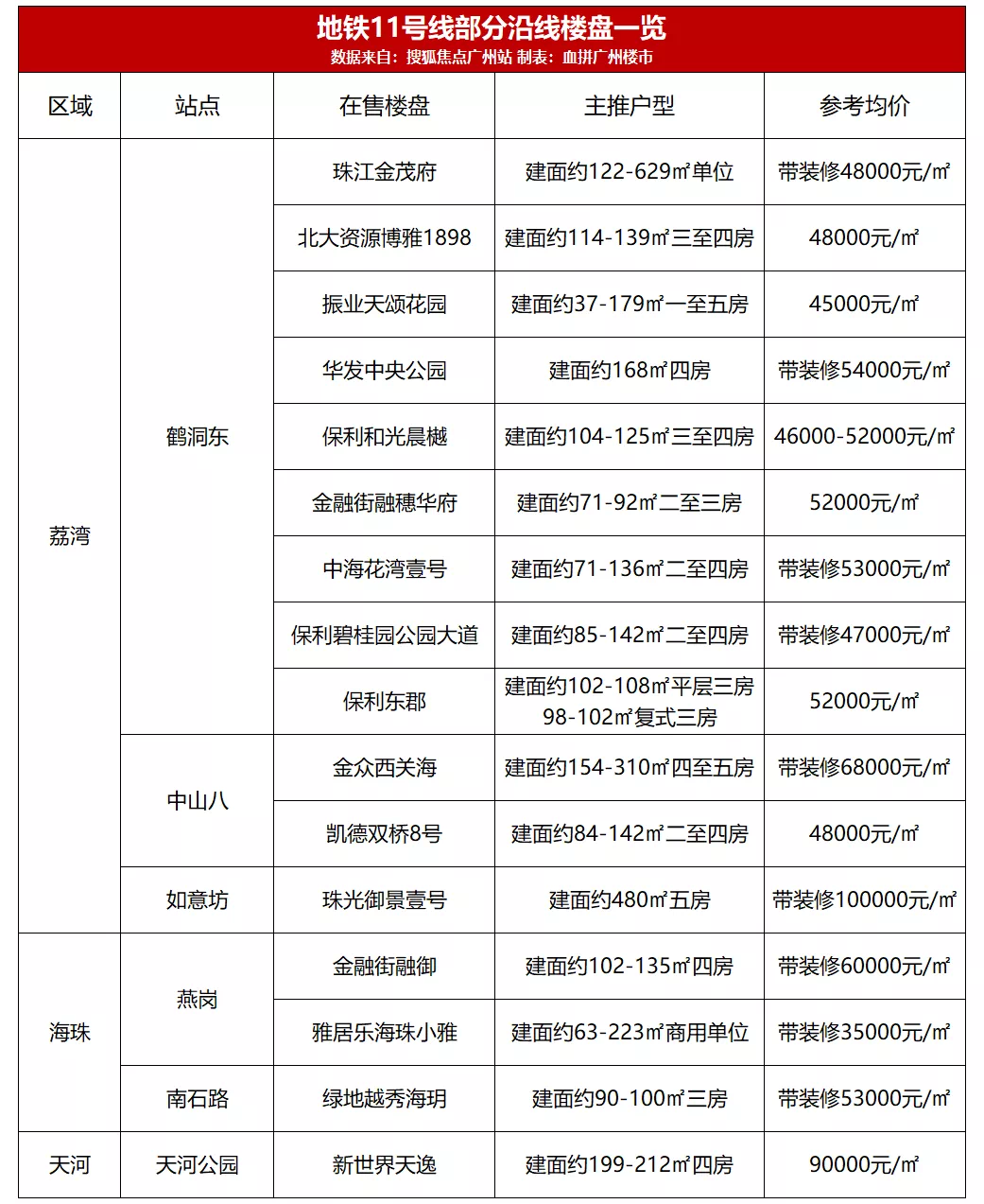 据悉,该沿线楼盘价格较高,其中,途经珠江新城的楼盘较高售价16万元/㎡!