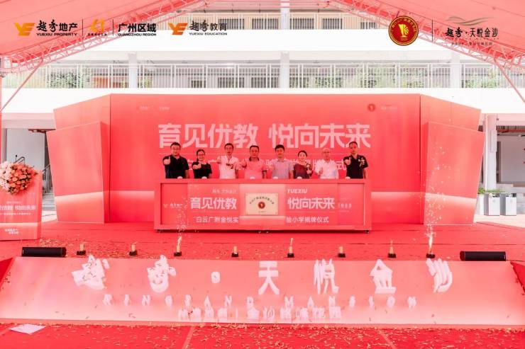 广州白云广附教育集团总校长殷小毛、越秀地产教育事业部总经理助理邱金鸽分别对金悦实验小学未来的教育理念发表了精彩的演说,在热烈的氛围里,各位领导为金悦实验小学正式揭牌。