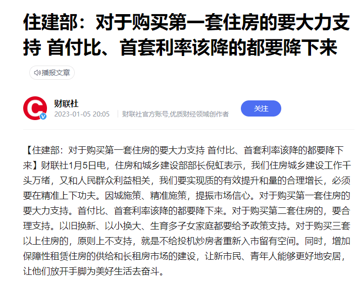 就在今年1月,住建部会议公开强调大力支持刚性和改善性住房需求。另外,住建部部长倪虹亦表示: