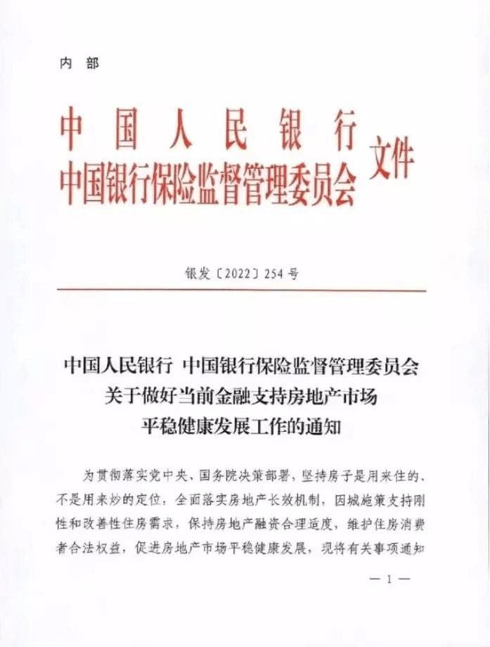 11月11日,一则人民银行和银保监会联合发布的 《关于做好当前金融支持房地产市场平稳健康发展工作的通知》( 银发〔2022〕254号,以下简称“245号文”)的内部文件传出。