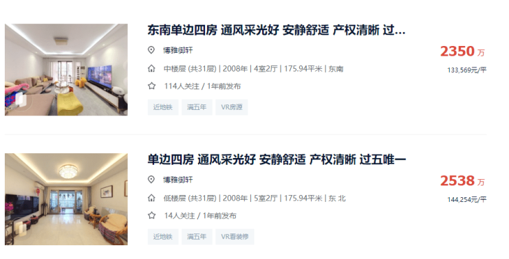 早期的回迁房博雅御轩,已于2020年拿到国土证。不过其二手房鲜有挂牌出售,如今在贝壳上仅有2套放售,挂牌价格高达14.4万元/㎡。