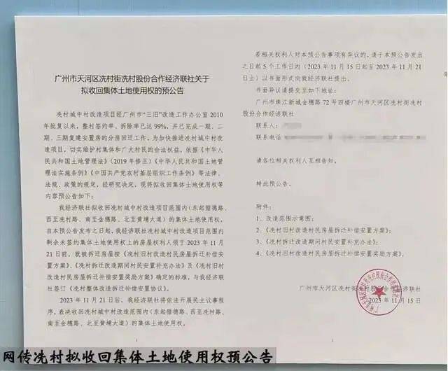 今年11月,天河区冼村经济联社发布拟收回集体土地使用权预公告,再度引发热议。
