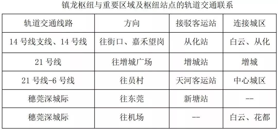 相关规划文件认为,镇龙枢纽轨道交通设施条件较好,近期周边地区居民的中长途客运出行可直接采用轨道出行或通过轨道接驳至天河、增城、新塘等客运站,再乘坐长途大巴出行。
