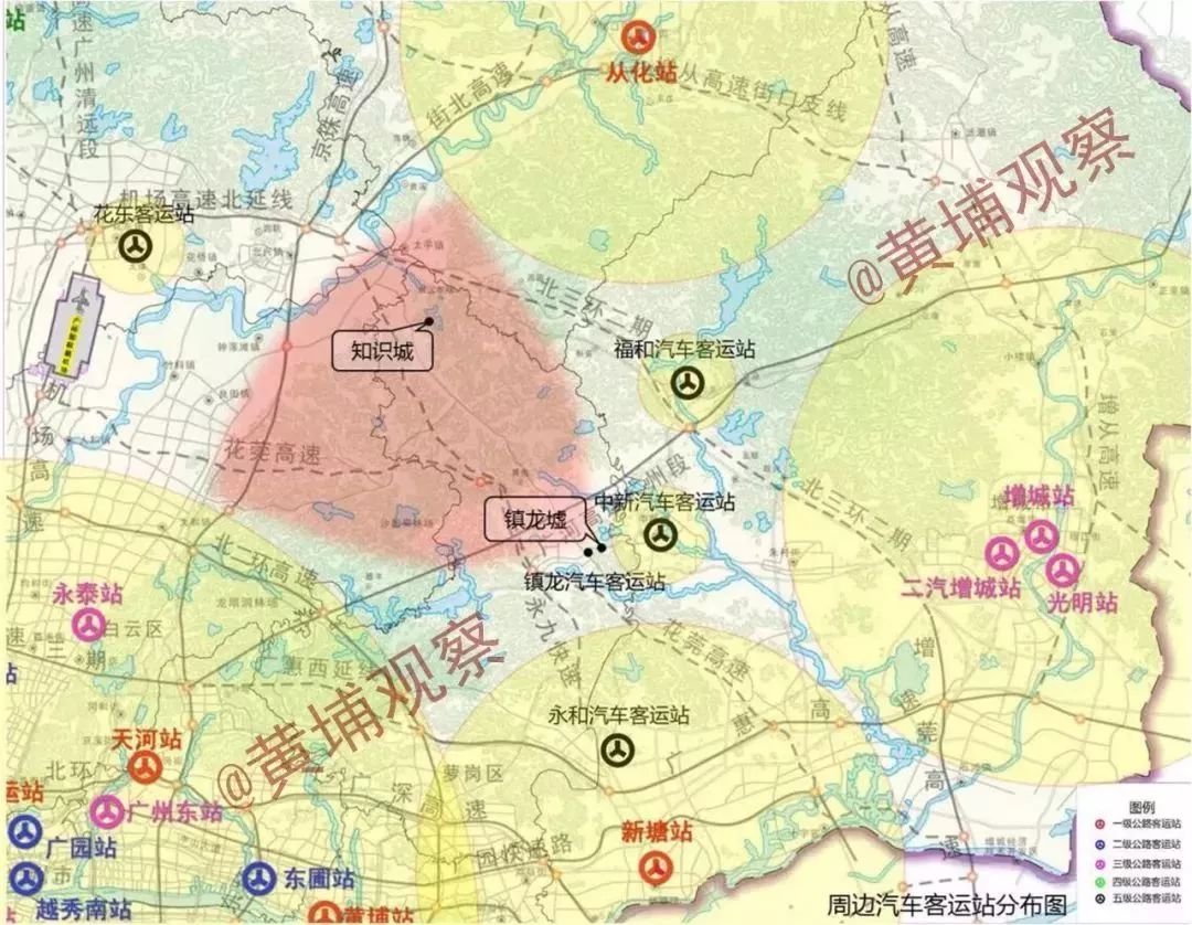 ▲镇龙枢纽周边汽车客运站分布,来源:黄埔观察