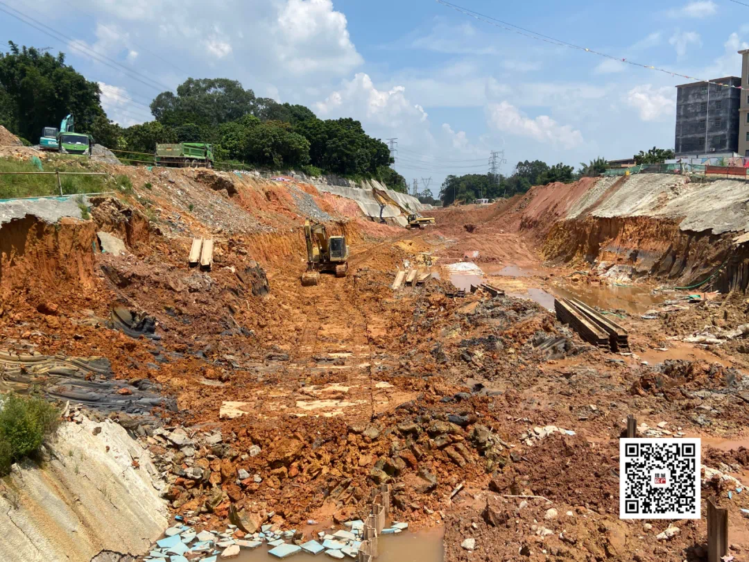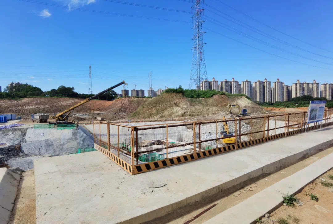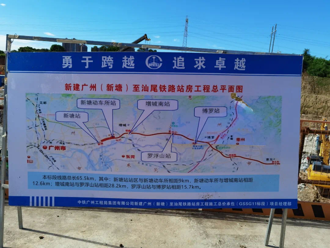 多辆挖掘机进行作业输电路线迁改工程还在进行增城南站施工现场有多辆挖掘机正进行挖土作业,多辆车在运土,如火如荼加快建设中。根据现场的提示牌以及工程概述图显示,目前作业的是增城南站110千伏及以上输电路线迁改工程。不过与7月份的进度相比,有部分电缆沟槽已回填。预计明年会开挖地铁预留工程和建设高铁站房。