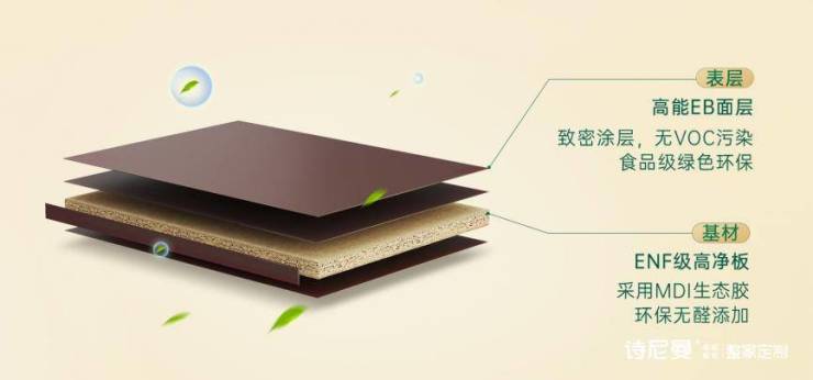 随着新生代消费群体的兴起,我国的消费结构也在不断升级。诗尼曼洞察新生代消费者生活方式和理念,从设计、功能、品质多维度剖析消费者的多元化需求,重磅推出ENF级——EB高能板,将高颜美学和黑科技工艺融入板材中,打造奢颜高能的家居产品。