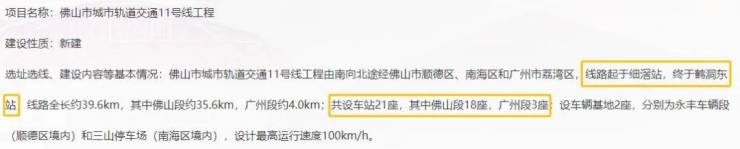 环评信息公开中明确指出,佛山市城市轨道交通11号线工程由南向北途经佛山市顺德区、南海区和广州市荔湾区,线路起于细滘站,终于鹤洞东站。