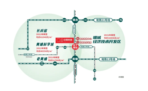 永宁紧邻科学城,是径直连接增城与科学城的板块。项目距离科学城仅约7公里,是广州东拓不限购排名前列站,向西接长岭居、科学城、老黄埔等高价值板块,而购房成本能立省1/2。