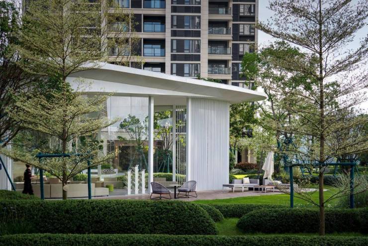 比如,龙湖在广州打造的排名前列TOD作品,龙湖揽境凭借极具前瞻性的“有轨电车站-商业裙楼-社区花园-住宅”垂直城市生活模式,与繁华无间。在此繁华之中,龙湖通过先有园而再成筑的规划,以入口、轴线、核心、住宅间等不同空间中园林丰富的层次变化,增加景观深度,较大化的保证森林意境的还原。为业主构建一处藏匿于密林的静谧居所,将自然的美好一一典藏,让他们能够在“森居”中寻找生活的纯粹。