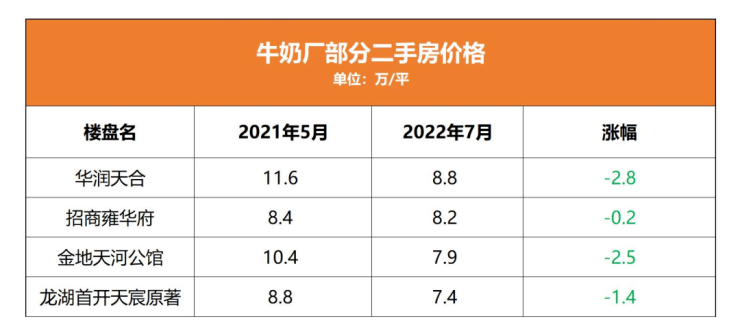 然而非中心区的市场却是另一种场景,去年扬言房价要“破8冲10”的牛奶厂板块,今年可谓凉意十足,有楼盘二手价格已经回到7字头,成交量也稀少。