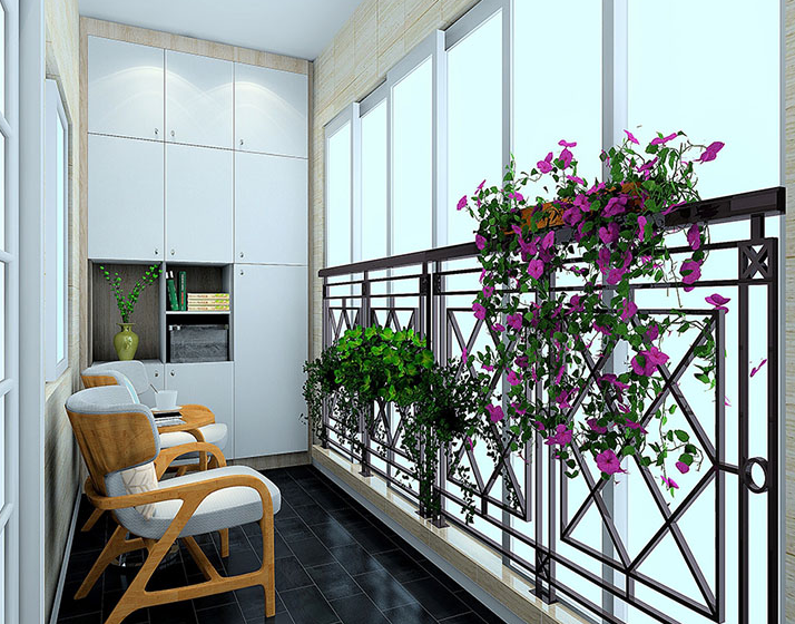 阳台设计办公区或者做休闲区的朋友要注意做好防晒,购买防晒隔热窗帘就行。