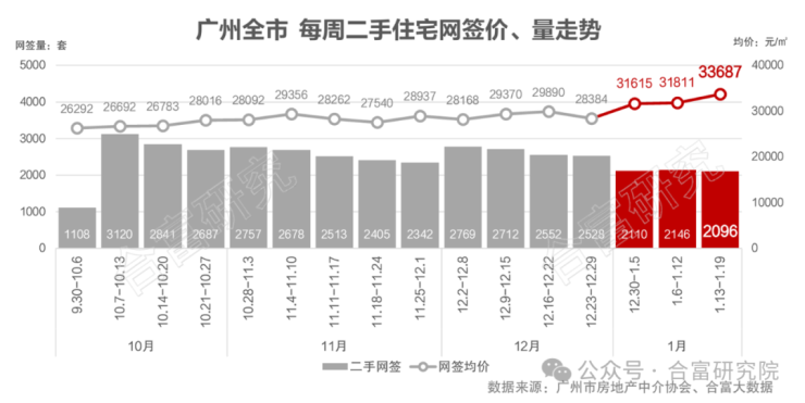 进入2025年之后,广州二手住宅网签均价已连续三周上涨。