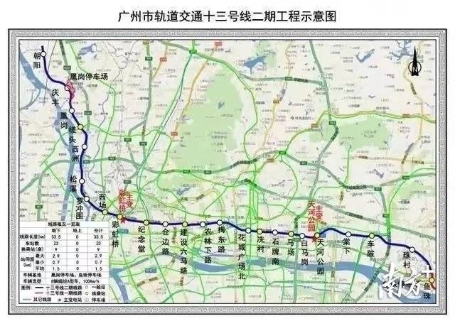 十三号线二期(朝阳-鱼珠)土建工程累计完成76%。23座车站中,12座已封顶,11座进行土建施工。23个区间中,18个已贯通,其余5个进行土建施工;出入场线已贯通;6 座车站进行机电施工。鱼珠停车场进行机电施工,凰岗停车场及盖体进行土建及机电施工。