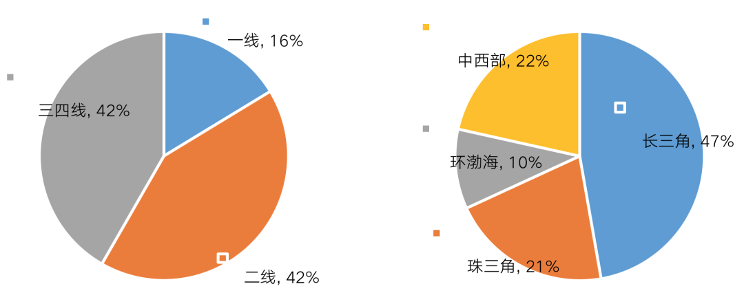 受长三角区域热度持续影响,再加上4月无锡也进行了集中出让,百强房企在长三角拿地金额占47%,接近一半。