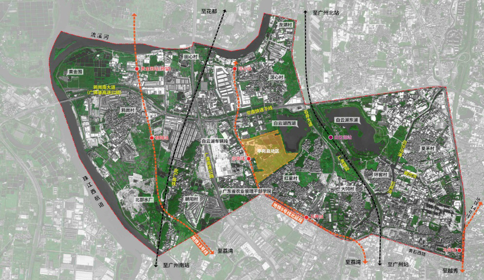 ➤发挥白云国际机场、广州火车站、白云火车站等重要对外交通枢纽优势,加快建设广清城际白云湖站,推进广深港高铁线路引入白云湖数字科技城。