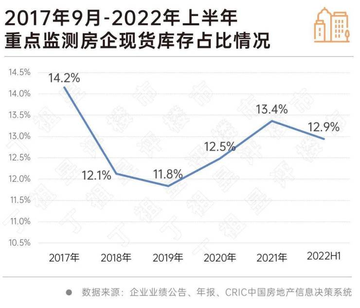 实际上,2022年以来,行业下行压力与日俱增,百强房企销售规模腰斩,根据CRIC统计,百强房企2022年上半年销售规模平均下降50%,部分房企整体销售持续承压,从而造成现房库存规模增加。