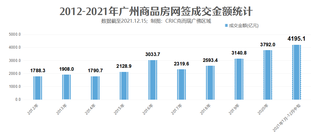截至12月15日,广州商品房销售金额已然达到4195.1亿元,刷新广州房地产史上揽金新高,亦是广州历年来首次突破四千亿大关,甚至远远超过了去年全年3792亿元的网签金额!