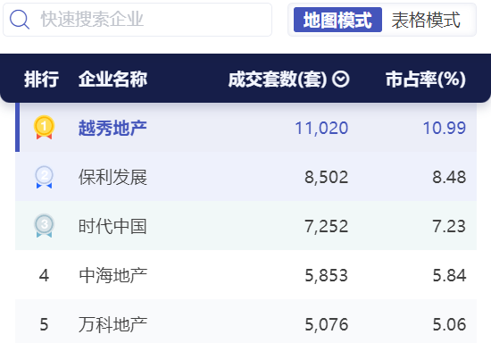 CRIC广州房企销售榜