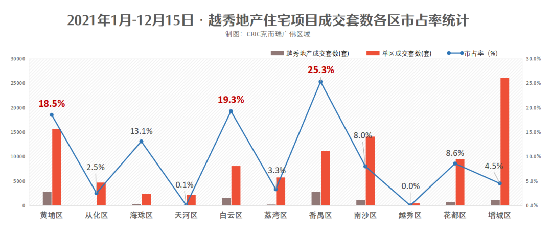 也就是说在白云和黄埔两区,约每5套新房成交有1套来自越秀地产旗下。