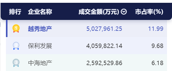 百舸争流,奋楫者先。克而瑞数据显示,今年截至12月15日,越秀地产全口径金额合计502.8亿元,是广州史上同期1月-12月中旬全口径业绩首度突破五百亿大关的开发商!