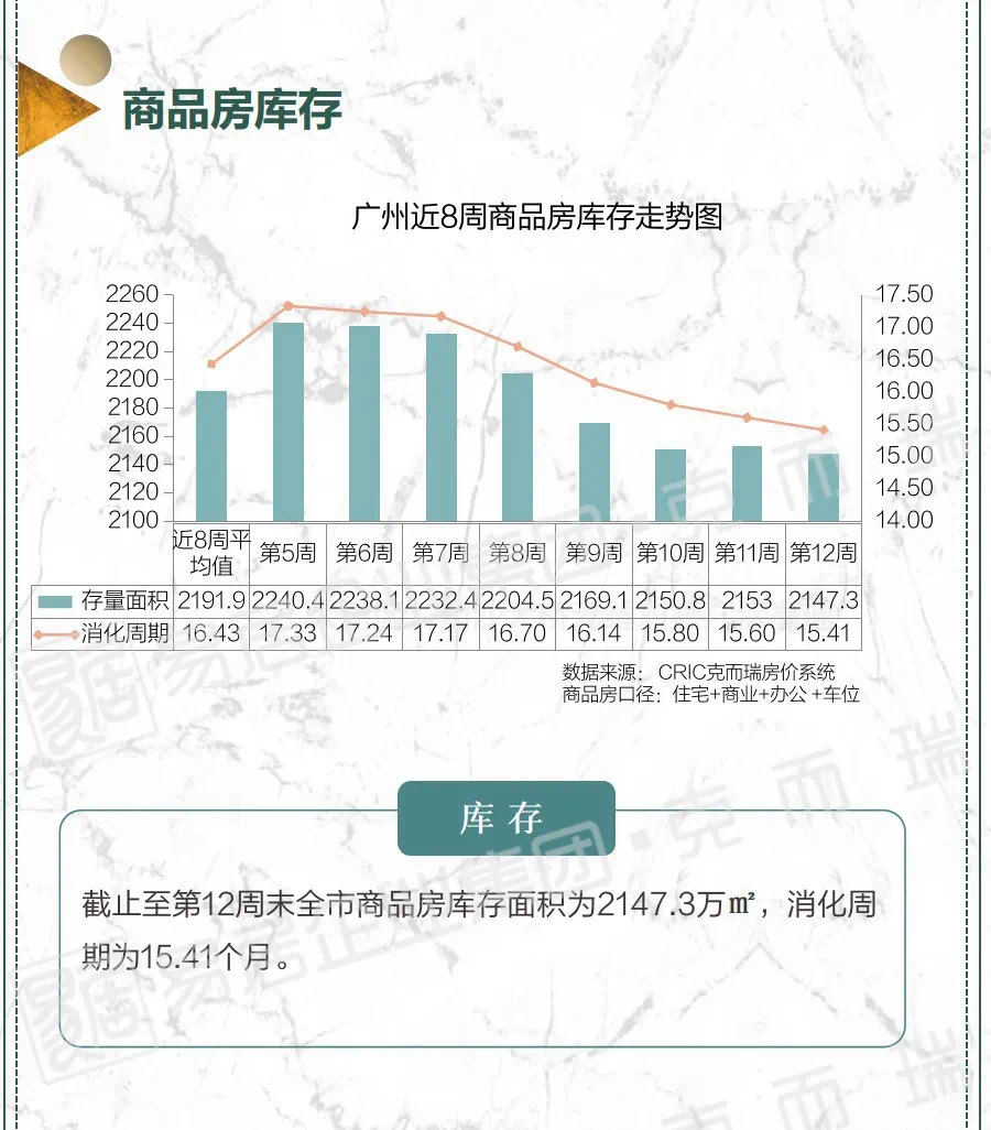 按照行业公认的库存警戒线,目前广州全市新房库存量已连续两月低于12个月,库存压力进一步缓解;不过,即将进入“银四”,库存是否会有所增加呢,值得继续关注。