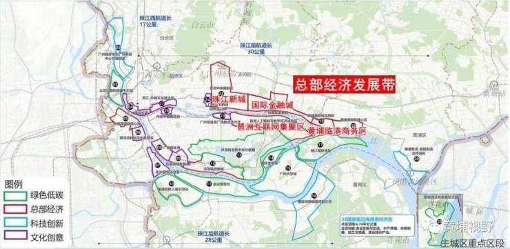 黄埔滨江沿江岸线长度约43公里,打造黄埔港中央商务区、东部现代服务中心。