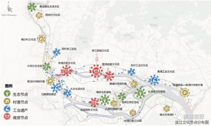 规划提出打造“文化的珠江”:深度挖掘历史文化遗产,全景式展现广州两千余年历史:建立“古代、近代、现代”三级资源库,集中凸显滨江岭南水乡、工业遗产、近代城市3种风貌带。