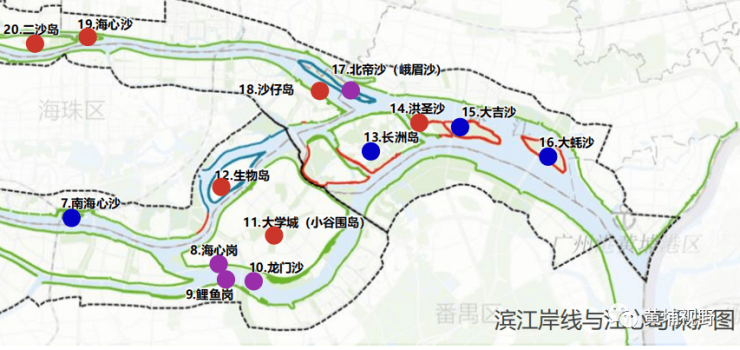 其中,珠江黄埔段涉及江心岛5个:生物岛、长洲岛、洪圣沙、大吉沙、大蚝沙。其中,生物岛与洪圣沙属于优化利用类;长洲岛、大吉沙、大蚝沙属于限制开发类。