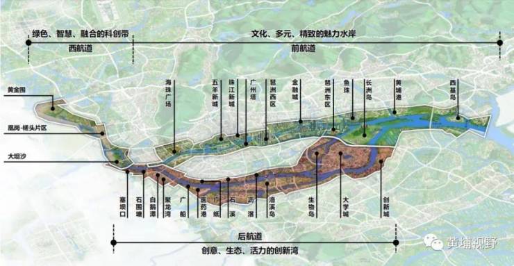 规划提出,塑造各具特色的滨江风貌带:前航道筑造文化、多元、精致、现代的全球城市魅力水岸;后航道打造创意、生态、活力的创新江湾;西航道塑造绿色、智慧、融合的低碳科创长廊。