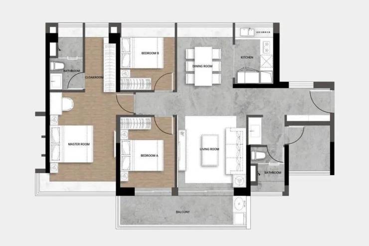 而建面约140㎡3+1房则跟上个户型的设计差不多,只是空间要更加宽敞些。