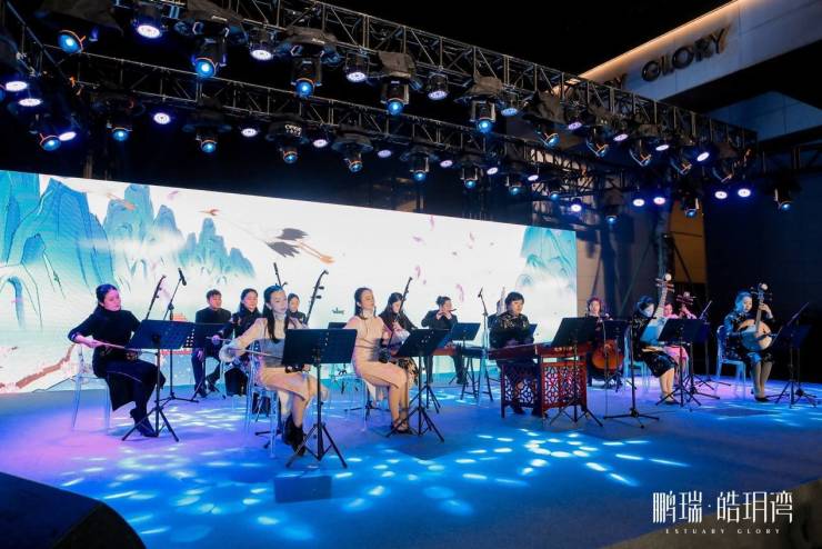 鹏瑞·皓玥湾更是邀请湾区内规模最大民族乐团——华韵民族乐团,现场倾情奉献古典民乐,演绎着《新茉莉花》、《菊花台》及《战马奔腾》等一首首经典名乐,在风雅之间,聆听东方韵律。