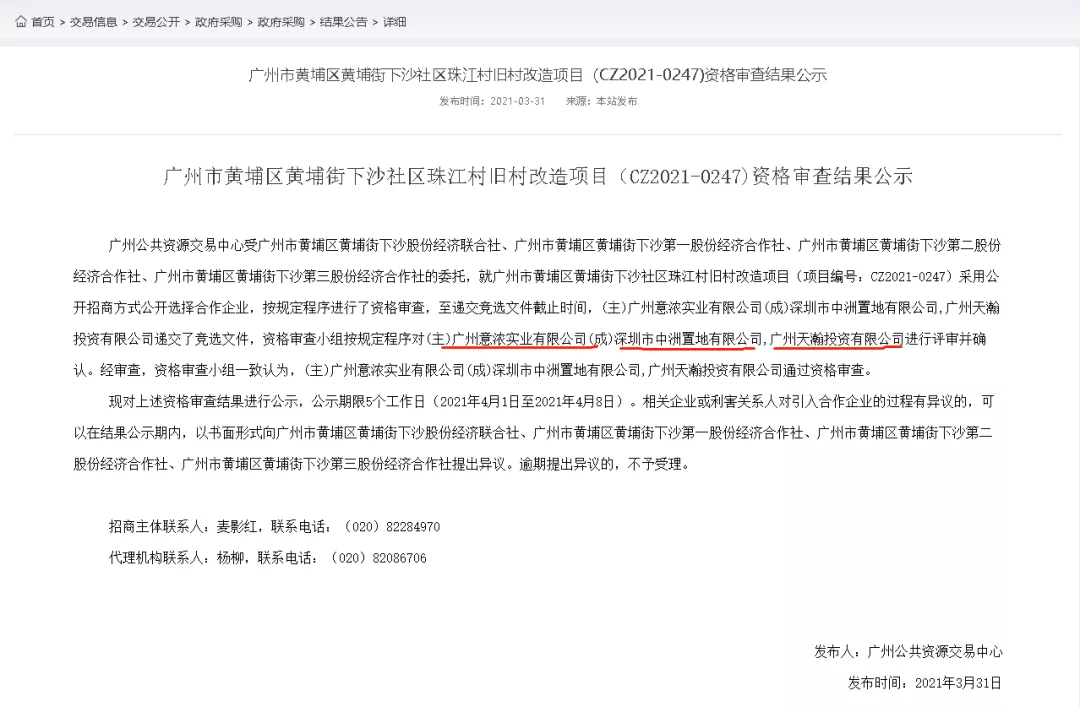 就在昨日,广州公共资源交易中心公布了黄埔珠江村旧改资格审查结果。