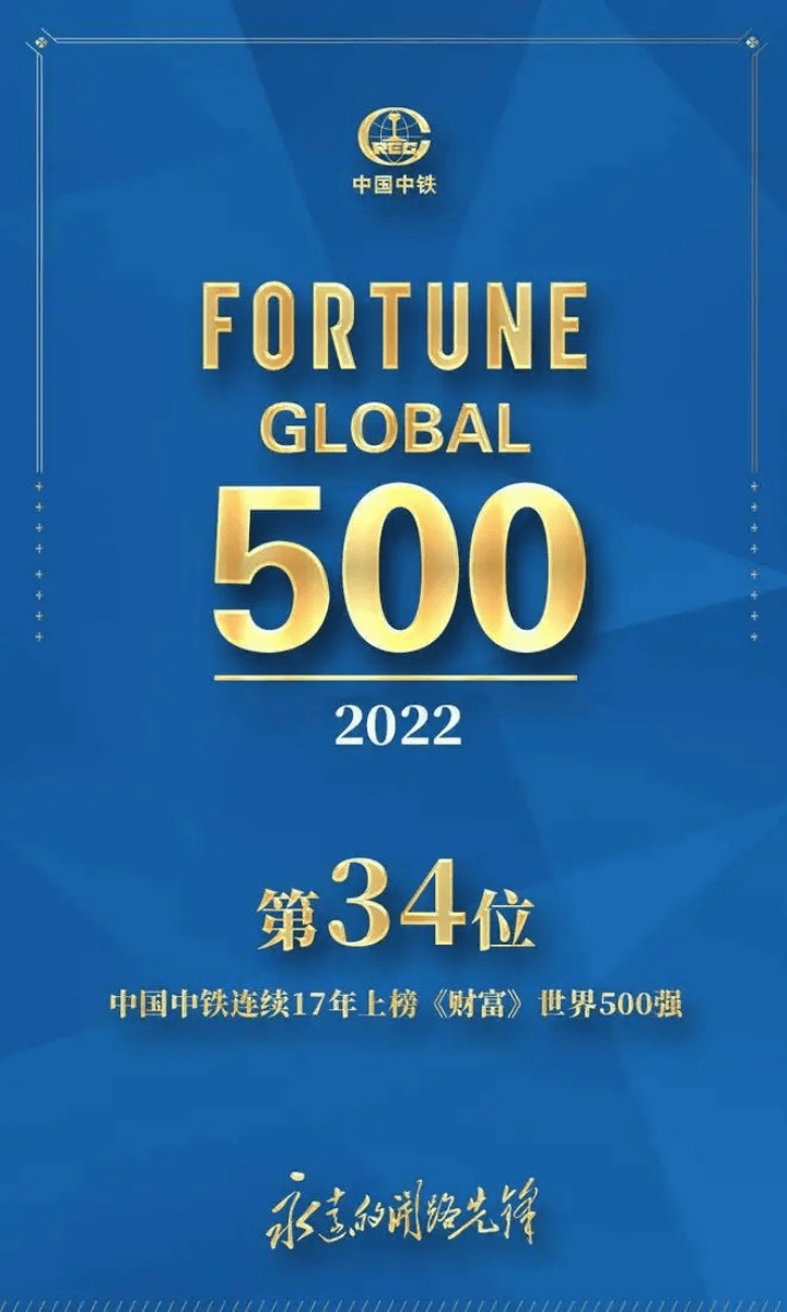 中国中铁,2022年位居世界500强企业TOP34,中国500强企业第10位。2022年中国中铁置业排名中国房地产企业品牌价值第25位。
